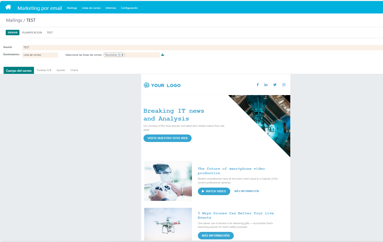 - Crear plantillas personalizadas para tus boletines informativos que podrás utilizar de manera recurrente.